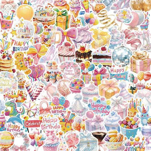 Material: papel e vinil Peso: 30-60 g Tamanho: 3-6 cm Quantidade: 200 unidades 200 unidades O conjunto estético inclui bolos, balões, cupcakes, presentes, chapéus de festa, velas e designs festivos, perfeito para decorações de festas de aniversário e artesanato. Acabamento holográfico brilhante Cada decalque apresenta um efeito metálico de brilho a laser, tornando os adesivos mais atraentes e elegantes para decorar itens pessoais ou acessórios de festa. Impermeável e durável Feito de vinil premium com revestimento à prova d'água, resistente a rasgos e UV para manter as cores vibrantes para uso duradouro. Fácil de usar e reutilizável Descasque e cole em qualquer superfície plana; não deixa resíduos pegajosos quando removido, reutilizável em laptops, garrafas de água, cadernos e malas. Diversão para todas as idades. O estilo de desenho animado fofo e os vibrantes elementos de aniversário o tornam adequado para crianças, adolescentes e adultos decorarem diários, álbuns de recortes, artesanato ou lembrancinhas.