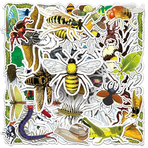 60 designs exclusivos de insetos — Este conjunto inclui 60 decalques de vinil com diversas ilustrações de insetos de desenhos animados, como abelhas, besouros, libélulas, caracóis, lagartas e gafanhotos, atraindo crianças e fãs da natureza. Material de vinil de alta qualidade — Feito de vinil impermeável e durável que resiste a rasgos e desbotamento. Ótimo para superfícies internas e externas, como garrafas, laptops e estojos. Fácil de usar e remover — Cada decalque é pré-cortado e fácil de descascar com um adesivo forte que não deixa resíduos pegajosos, tornando a decoração limpa e simples. Aplicação de amplo uso — Perfeito para personalizar notebooks, garrafas de água, telefones, tablets, diários, álbuns de recortes, skates, capacetes e estojos de viagem. Ferramenta divertida de bricolage e educacional — ideal para projetos de artesanato infantil, atividades de aprendizado com temas de insetos ou para adicionar um toque colorido e inspirado na natureza a qualquer objeto pessoal.