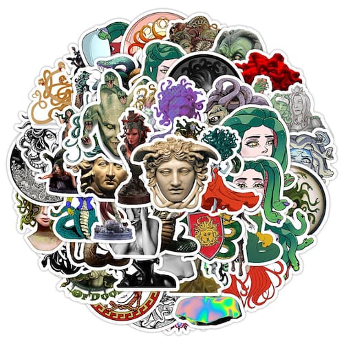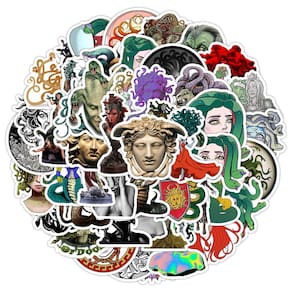 Coleção Mythical Medusa — Inclui 50 designs exclusivos de vinil inspirados na lendária Medusa Gorgon grega, com padrões vívidos de cabelo de cobra, estátuas e interpretações fantásticas. Vinil impermeável durável — Feito de material de vinil de alta qualidade que é à prova d'água, à prova de sol e resistente a arranhões, adequado para uso interno e externo. Aplicação e remoção suaves — Cada decalque tem um adesivo forte, mas não deixa resíduos pegajosos após a remoção, perfeito para redecorações frequentes. Amplo uso decorativo — Ideal para personalizar laptops, garrafas de água, capas de telefone, cadernos, malas, skates ou álbuns de recortes com vibrações míticas e ousadas. Exclusivo para fãs de mito e fantasia — Um ótimo conjunto para amantes da mitologia antiga, do estilo gótico, da arte fantástica e para aqueles que gostam de visuais ousados e ferozes.