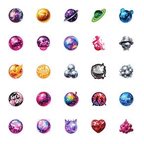 Pacote de adesivos Disco & Cosmic: inclui 50 adesivos de vinil com planetas vibrantes e brilhantes, designs retrô e gráficos inspirados no espaço, perfeitos para adicionar um toque de diversão aos seus itens pessoais. Duráveis e impermeáveis: feitos de vinil premium, esses decalques são à prova d'água, resistentes a arranhões e ideais para decorar sua capa de telefone, skate, garrafa de água e muito mais. Designs retrô e com temas espaciais: com bolas de discoteca brilhantes, planetas coloridos e elementos cósmicos, esses adesivos trazem uma atmosfera divertida do espaço sideral aos seus pertences. Ideal para personalização: perfeito para personalizar cadernos, álbuns de recortes, skates, capas de telefone e outros itens com obras de arte cósmicas e vibrantes. Ótimos para entusiastas do espaço e da música: indispensáveis para fãs da exploração espacial e da cultura musical retrô, esses adesivos expressam seu amor pelas estrelas e pela atmosfera de festa.