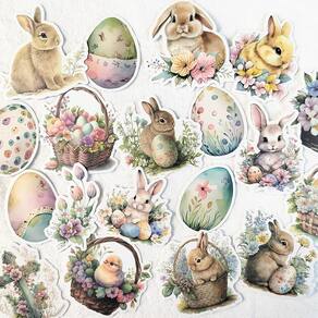 Material: papel e vinil Peso: 30-60 g Tamanho: 3-6 cm Quantidade: 100 unidades Charmoso tema de Páscoa — Inclui 50 adesivos em aquarela de coelhinho, pintinho e ovo, perfeitos para adicionar o charme primaveril às suas decorações e artesanatos. Material de vinil premium — adesivos duráveis, à prova d'água e resistentes a rasgos permanecem vibrantes e são fáceis de aplicar e remover sem deixar resíduos. Ampla aplicação — Ideal para laptops, garrafas de água, cadernos, skates, álbuns de recortes, capas de telefone, malas e projetos de bricolage. Desenhos fofos e coloridos — Apresentam cores pastel pintadas à mão e ilustrações detalhadas, criando uma aparência suave e estética de primavera para crianças e adultos. Perfeito para eventos e artesanato — Ótima opção para caçar ovos de Páscoa, lembrancinhas, recompensas em sala de aula, álbuns de recortes sazonais e projetos de decoração festiva.