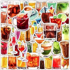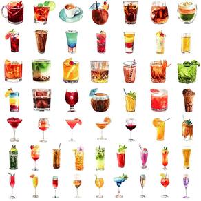 Pacote de adesivos em aquarela, coquetel, anime, 50 unidades à prova d`água