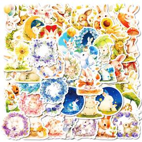Material: papel e vinil Peso: 30-60 g Tamanho: 3-6 cm Quantidade: 50 unidades Tema Adorable Bunny — Inclui 50 adesivos de coelhinho de design exclusivo com flores, luas, folhas e detalhes sazonais, perfeitos para criar uma estética suave e aconchegante. Impermeável e durável — Feito de material de vinil de alta qualidade que é à prova d'água, resistente a rasgos e não deixa resíduos pegajosos após a remoção, garantindo um uso duradouro. Amplas aplicações — Ideal para decorar laptops, skates, álbuns de recortes, garrafas de água, capas de telefone, diários, cadernos, malas, guitarras e muito mais. Arte vívida em aquarela — Cada adesivo é impresso com cores ricas e detalhes finos, dando uma aparência pintada à mão que se destaca em qualquer superfície e adiciona um toque artístico e aconchegante. Perfeito para projetos de bricolage — Fácil de descascar e colar, ótimo para crianças, adolescentes e adultos personalizarem seus pertences, projetos de artesanato e decoração estética do quarto.
