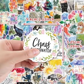 Material: papel e vinil Peso: 30-60 g Tamanho: 3-6 cm Quantidade: 100 unidades Estilo artístico de aquarela Apresenta uma variedade de designs com temas de aquarela, incluindo flores, frutas, animais, vida marinha, arco-íris, plantas e palavras inspiradoras para um toque artístico colorido. Vinil impermeável durável Feitos com vinil de PVC de alta qualidade, esses adesivos são à prova d'água, resistentes a rasgos e à prova de sol, garantindo impressões vívidas e duradouras em várias superfícies. O adesivo Easy Peel & Residue-FreeStrong facilita a colagem em itens diferentes, enquanto o design removível permite um descascamento limpo sem deixar resíduos ou danos pegajosos. Ampla gama de usos Perfeito para decorar laptops, garrafas de água, álbuns de recortes, diários, malas, skates, capas de telefone, bicicletas, geladeiras e projetos de artesanato DIY. Para adolescentes e adultosDecalques estéticos modernos em aquarela adequados para crianças, adolescentes e adultos que gostam de decoração criativa, tornando os itens do dia a dia mais exclusivos e elegantes.