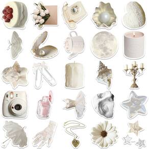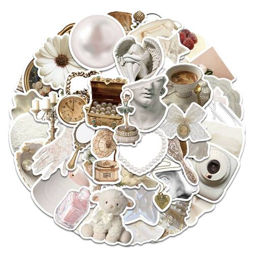 Material: papel e vinil Peso: 30-60 g Tamanho: 3-6 cm Quantidade: 50 unidades Tema branco elegante 50 peças de adesivos com pérolas, estátuas, asas de anjo, luvas de renda, flores, xícaras de café, borboletas e elementos vintage em estilo estético de creme macio. Material de vinil durável Feito de vinil impermeável de alta qualidade, resistente ao desbotamento, à prova de sol e facilmente removível sem deixar resíduos pegajosos. Uso versátil Perfeito para decorar laptops, diários, álbuns de recortes, capas de telefone, guitarras, garrafas de água, malas, skates e outros artesanatos de bricolage. Design estético Tons delicados de branco creme misturados com padrões vintage e artísticos, adequados para diários, amantes da arte, adolescentes e adultos. Pacote DIY criativo Um pacote de adesivos atencioso para personalizar diários, agendas, diários com marcadores e projetos, adicionando um toque elegante e elegante aos itens do dia a dia.