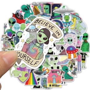 Material: papel e vinil Peso: 30-60 g Tamanho: 3-6 cm Quantidade: 50 unidades de tema alienígena e OVNI — 50 peças de adesivos alienígenas de desenhos animados com OVNIs, elementos cósmicos e personagens extraterrestres divertidos, perfeitos para amantes de ficção científica e do espaço. Vinil impermeável durável — Feitos de vinil de alta qualidade, esses adesivos são à prova d'água, resistentes ao desbotamento e de longa duração para uso interno e externo. Fácil de descascar e sem resíduos — A forte adesão garante uma aplicação segura, mas os adesivos podem ser removidos de forma limpa sem deixar resíduos pegajosos. Decoração versátil — Ótima para decorar laptops, iPads, carros, capacetes, skates, garrafas de água, malas, álbuns de recortes e cadernos. Creative DIY Pack — Uma coleção divertida para crianças, adolescentes e adultos personalizarem pertences, compartilharem com amigos e adicionarem um toque cósmico único. Tema Alien & UFO — 50 peças de adesivos alienígenas de desenho animado com OVNIs, elementos cósmicos e personagens extraterrestres divertidos, perfeitos para amantes da ficção científica e do espaço. Vinil impermeável durável — Feitos de vinil de alta qualidade, esses adesivos são à prova d'água, resistentes ao desbotamento e de longa duração para uso interno e externo. Fácil de descascar e sem resíduos — A forte adesão garante uma aplicação segura, mas os adesivos podem ser removidos de forma limpa sem deixar resíduos pegajosos. Decoração versátil — Ótima para decorar laptops, iPads, carros, capacetes, skates, garrafas de água, malas, álbuns de recortes e cadernos.
