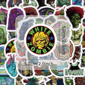 Material: papel e vinil Peso: 30-60 g Tamanho: 3-6 cm Quantidade: 50 unidades 50 designs exclusivos de zumbis Inclui 50 adesivos de vinil com temas de terror com zumbis, caveiras, monstros e personagens assustadores, perfeitos para fãs de estilos estéticos assustadores e sombrios. Impermeáveis e duráveis Feitos de vinil de alta qualidade com revestimento à prova d'água e resistente a UV, esses decalques permanecem brilhantes e duram muito tempo, mesmo em equipamentos para atividades ao ar livre, como skates e motocicletas. Design fácil de aplicar e remover para decoração rápida, removível sem resíduos ou danos pegajosos, seguro para laptops, garrafas, cadernos e superfícies lisas. Aplicações versáteis Ideal para personalizar carros, capacetes, skates, malas, diários, capas de telefone e álbuns de recortes, dando aos seus pertences uma aparência assustadora e ousada. Perfeito para amantes do terror. Arte ousada, assustadora e detalhada de zumbis torna este pacote de adesivos ótimo para adolescentes, adultos e colecionadores que gostam de terror e designs exclusivos.