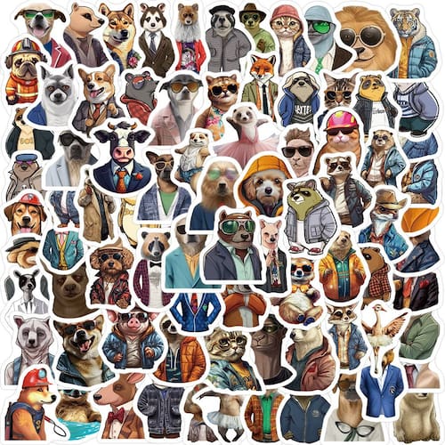 Material: papel e vinil Peso: 30-60 g Tamanho: 3-6 cm Quantidade: 82 unidades Tema moderno de animais — Inclui 82 adesivos exclusivos com animais elegantemente vestidos, como cães, gatos, ursos, raposas e muito mais, com roupas e acessórios modernos. Vinil impermeável durável — Feito de vinil impermeável premium que é resistente a arranhões, rasgos e desbotamento, garantindo uma decoração vibrante e duradoura em ambientes internos ou externos. Amplo uso decorativo — perfeito para laptops, diários, álbuns de recortes, capas de telefone, malas, iPads, skates, garrafas de água e muito mais para mostrar uma personalidade moderna. Fácil aplicação — Design de descascar e colar com adesivo forte que permanece seguro no lugar, mas é removido de forma limpa sem deixar resíduos pegajosos. Para adolescentes e adultos — Conjunto de adesivos criativos adequado para quem adora moda e animais peculiares, ideal para artesanato, diários, coleções e decoração de itens essenciais do dia a dia. Tema moderno de animais modernos — Inclui 82 adesivos exclusivos com animais elegantemente vestidos, como cães, gatos, ursos, raposas e muito mais, com roupas e acessórios modernos. Vinil impermeável durável — Feito de vinil impermeável premium que é resistente a arranhões, rasgos e desbotamento, garantindo uma decoração vibrante e duradoura em ambientes internos ou externos. Amplo uso decorativo — perfeito para laptops, diários, álbuns de recortes, capas de telefone, malas, iPads, skates, garrafas de água e muito mais para mostrar uma personalidade moderna. Fácil aplicação — Design de descascar e colar com adesivo forte que permanece seguro no lugar, mas é removido de forma limpa sem deixar resíduos pegajosos.