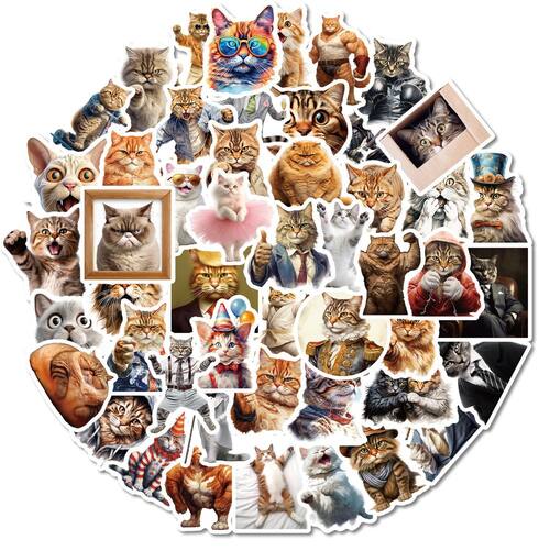 Material: papel e vinil Peso: 30-60 g Tamanho: 3-6 cm Quantidade: 50 peças Funny Realistic Cat Designs 50 peças de adesivos criativos para gatos com expressões exageradas, fantasias e poses cômicas, perfeitos para adicionar humor e personalidade aos seus itens. Vinil impermeável durável Feito de material de vinil de alta qualidade, impermeável, resistente ao sol e à prova de arranhões, mantendo as cores vibrantes para uso duradouro em ambientes internos ou externos. Fácil de descascar e remover A forte adesão garante uma fixação segura em superfícies como laptops, malas, skates ou garrafas, além de ser removível sem resíduos pegajosos. Ampla aplicação. Ideal para decorar cadernos, álbuns de recortes, diários, garrafas de água, capas de telefone, malas, skates e paredes de dormitórios com um toque criativo. Para adolescentes e adultosPacote de adesivos estéticos e divertidos para gatos, adequado para amantes de gatos, adolescentes e adultos que gostam de decalques divertidos e realistas com temas de animais.
