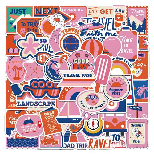 Material: papel e vinil Peso: 30-60 g Tamanho: 3-6 cm Quantidade: 50 unidades Tema de viagem rosa 50 peças de adesivos de vinil em tons de rosa e laranja com passaportes, vibrações de verão, arco-íris, globos, malas e citações de viagem, perfeitos para amantes de viagens e aventureiros. Durável e impermeável Feito de vinil premium com revestimento à prova d'água e à prova de sol, garantindo cores vibrantes e uso duradouro em garrafas, laptops ou bagagens. O design fácil de usar e colar com adesivo forte simplifica a aplicação; os decalques são removidos de forma limpa sem deixar resíduos pegajosos. Amplo uso decorativo Ótimo para decorar álbuns de recortes, diários, skates, guitarras, cadernos, capacetes ou equipamentos para atividades ao ar livre, adicionando uma atmosfera de viagem moderna e estética. Criativo para adolescentes e adultosIdeal para estudantes, viajantes e entusiastas de bricolage que gostam de personalizar seus pertences com designs divertidos e elegantes de adesivos de vinil.