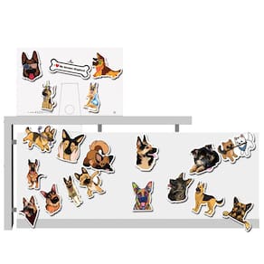 Material: papel e vinil Peso: 30-60 g Tamanho: 3-6 cm Quantidade: 50 unidades Tema de pastor alemão — 50 adesivos exclusivos com cães pastores alemães em estilos animados, artísticos e realistas, perfeitos para amantes de animais de estimação. Desenhos fofos e criativos — Inclui uma mistura de ilustrações divertidas e rostos de cachorros detalhados que adicionam personalidade e charme aos seus itens. Durável e impermeável — Feito de material de vinil premium, impermeável, resistente ao sol e duradouro com cores vivas e brilhantes. Aplicativo multiuso — Ótimo para laptops, capas de telefone, diários, skates, álbuns de recortes, garrafas de água, cadernos e malas. Para crianças, adolescentes e adultos — Os adoráveis decalques German Shepherd são adequados para artesanato infantil, acessórios para adolescentes ou decoração criativa para adultos.