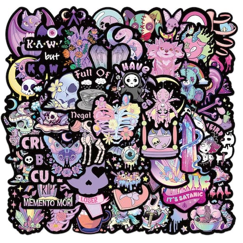 Material: papel e vinil Peso: 30-60 g Tamanho: 3-6 cm Quantidade: 56 peças em estilo de desenho animado gótico — Inclui 56 peças de adesivos estéticos góticos com caveiras, morcegos, cristais, esqueletos, flores e obras de arte em preto e roxo pastel. Vinil impermeável durável — Feito de material de vinil impermeável premium, resistente a arranhões, desbotamento e água para uso duradouro em ambientes internos e externos. Pacote DIY criativo — perfeito para decorar laptops, diários, álbuns de recortes, skates, malas, garrafas de água, capas de telefone e cadernos com arte escura e fofa. Vibrações únicas de Halloween — Uma mistura de estilo gótico e kawaii, ideal para adolescentes e adultos que amam decorações assustadoras, góticas em tons pastel e alternativas. Remoção sem resíduos — Fácil de descascar e colar, tem forte adesão e remove de forma limpa, sem deixar resíduos pegajosos em qualquer superfície lisa.