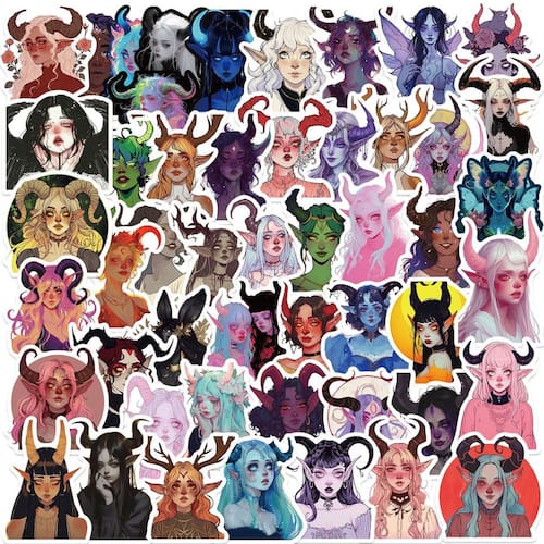 Design estético Fantasy Witch — Inclui 50 designs exclusivos com garotas com chifres no estilo anime gótico, bruxas, demônios, elfos e seres mágicos em cores ricas e temperamentais e estilos artísticos sonhadores. Vinil impermeável e de longa duração — Feito de material de vinil premium que é à prova d'água, resistente a arranhões e à prova de desbotamento — ideal para decorar superfícies internas e externas. Fácil de colar e remover — Esses decalques descascam facilmente e aderem bem em superfícies lisas sem deixar resíduos, perfeitos para projetos de bricolage e personalização estética. Uso decorativo versátil — Ótimo para personalizar laptops, skates, garrafas de água, diários, capas de telefone, malas, espelhos ou álbuns de recortes com temas de fantasia. Perfeito para fãs de Witchcore e Anime — Um item essencial para amantes de fantasia sombria, estética de garota demoníaca e estilos exclusivos de arte de desenho animado — ideal para adolescentes, artistas e fãs da subcultura gótica.