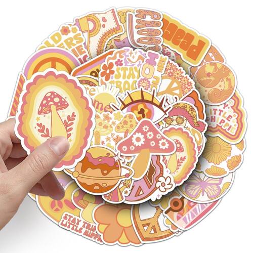 Material: papel e vinil Peso: 30-60 g Tamanho: 3-6 cm Quantidade: 50 unidades Shippie Aesthetic Design 50 peças de adesivos de vinil inspirados em elementos retrô boêmios e psicodélicos, incluindo cogumelos, arco-íris, sinais de paz, flores e padrões artísticos. Impermeável e durável Feito de material de vinil impermeável premium, resistente ao desbotamento e arranhões, garantindo cores e aderências duradouras. Fácil de aplicar e remover Os adesivos aderem firmemente a superfícies lisas e podem ser removidos sem deixar resíduos pegajosos, perfeitos para personalização frequente. Decoração versátil Ótima para decorar laptops, skates, malas, diários, garrafas de água, cadernos e projetos de artesanato DIY. Vibrações modernas de Boho Cores retrô brilhantes e designs criativos com temas hippies adicionam energia artística e de espírito livre aos pertences pessoais.