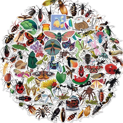 Pacote de adesivos Insect Specimens, 100 unidades de vinil de anime impermeável