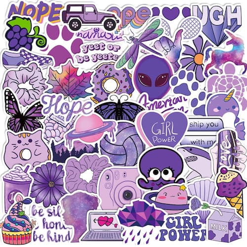 Tema estético roxo vibrante — Este pacote de adesivos inclui 50 decalques de vinil com design exclusivo em um estilo estético roxo, com animais fofos, citações inspiradoras, planetas, unicórnios e muito mais, perfeitos para expressar personalidade. Vinil impermeável de alta qualidade — Feitos de material de vinil durável, esses decalques são à prova d'água, resistentes ao desbotamento e não deixam resíduos pegajosos quando removidos, tornando-os ideais para uso interno e externo. Tamanho perfeito para uso versátil — Cada adesivo mede aproximadamente 5 a 8 cm, ideal para decorar laptops, garrafas de água, cadernos, capas de telefone, skates, guitarras e muito mais. Designs divertidos e criativos — Inclui uma mistura de personagens kawaii fofos, frases poderosas como “Girl Power” e “Hope” e elementos extravagantes, como alienígenas, donuts, borboletas e padrões de galáxias para inspirar criatividade. Fácil aplicação de descascar e colar — Esses adesivos são pré-cortados com bordas lisas, permitindo o fácil uso de descascar e colar. Ótimo para personalizar seus itens do dia a dia ou para usar em projetos de bricolage e diário.