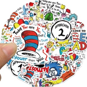Material: papel e vinil Peso: 30-60 g Tamanho: 3-6 cm Quantidade: 50 peças de desenhos divertidos de livros de histórias — Inclui 50 adesivos com personagens coloridos, citações de leitura e elementos divertidos de desenhos animados para inspirar a imaginação das crianças. Vinil impermeável durável — Feitos com vinil de alta qualidade, esses decalques são à prova d'água, resistentes ao desbotamento e à prova de arranhões para uso duradouro. Fácil de aplicar e remover — os adesivos descascam suavemente, aderem com firmeza e são removidos sem deixar resíduos pegajosos ou danificar as superfícies. Decoração multifuncional — perfeita para decorar laptops, diários, álbuns de recortes, garrafas de água, skates, capas de telefone e material de sala de aula. Adequado para professores e pais — Ideal para os professores usarem como recompensas em sala de aula ou para os pais incentivarem a criatividade e o amor pela leitura das crianças.
