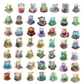 Creative Mini Worlds in Cups — Este conjunto inclui 50 decalques de vinil exclusivos, cada um apresentando cenas vibrantes com temas de taças repletas de pequenas florestas, animais, galáxias, sobremesas e paisagens oníricas. Material de vinil impermeável durável — Feito com vinil de alta qualidade que é à prova d'água, à prova de sol e resistente ao desbotamento. Ideal para uso em garrafas de água, garrafas térmicas, laptops, diários e muito mais. Design estético artístico — apresenta uma mistura de tons pastel, ilustrações em estilo fantasia e microdetalhes intrincados, perfeitos para amantes de bricolage, artistas e fãs de estilos de arte kawaii ou surreal. Fácil de usar e remover — Esses decalques são fáceis de descascar e colar, com adesivo que se mantém firme na maioria das superfícies lisas e é removido de forma limpa sem deixar resíduos pegajosos. Tamanhos portáteis para uso versátil — Cada adesivo varia de 5 a 8 cm, ótimo para personalizar telefones, skates, fichários, malas, guitarras e projetos de artesanato.