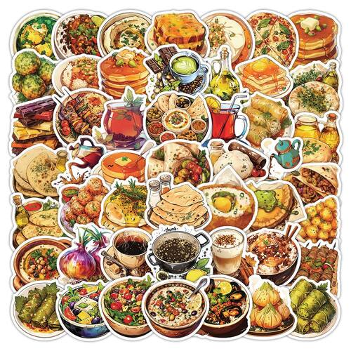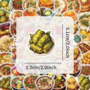 Material: papel e vinil Peso: 30-60 g Tamanho: 3-6 cm Quantidade: 54 unidades Tema gastronômico do Oriente Médio — Inclui 54 peças de adesivos de vinil com falafel, homus, kebabs, pão sírio, chá, saladas e outros pratos tradicionais do Oriente Médio em desenhos animados coloridos. Material impermeável de alta qualidade — Feitos de PVC premium, esses decalques são à prova d'água, resistentes ao sol e ao desbotamento, garantindo cores vibrantes de longa duração para uso interno e externo. Fácil aplicação e remoção — Um adesivo forte faz com que os adesivos grudem firmemente em superfícies lisas, mas eles se soltam de forma limpa sem deixar resíduos pegajosos. Design culinário criativo — ilustrações gastronômicas brilhantes de desenhos animados que destacam a autêntica culinária do Oriente Médio, perfeitas para amantes da comida, diários e projetos culturais. Uso multiuso — Ideal para decorar laptops, garrafas de água, skates, notebooks, telefones, malas, álbuns de recortes e muito mais.
