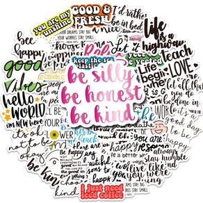 Material: papel e vinil Peso: 30-60 g Tamanho: 3-6 cm Quantidade: 50 unidades Coleção motivacional 50 peças de adesivos com citações positivas em inglês com estilo grafite de desenho animado, projetados para inspirar e elevar crianças, adolescentes e adultos. Material de vinil durável Decalques de vinil à prova d'água de alta qualidade que são resistentes ao desbotamento, rasgo e descamação, perfeitos para decoração duradoura. Fácil de aplicar e remover O adesivo forte garante uma aplicação suave em superfícies limpas, removível sem deixar resíduos pegajosos. Adesivos DIY versáteis. Ótimos para decorar laptops, diários, garrafas de água, skates, álbuns de recortes, capas de celular e malas. Estética criativaCores brilhantes e fontes divertidas de grafite combinam diversão com frases motivacionais, tornando seus acessórios únicos e elegantes.