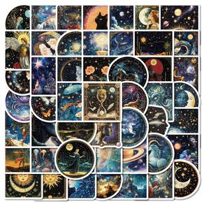 Material: papel e vinil Peso: 30-60 g Tamanho: 3-6 cm Quantidade: 50 unidades O tema Mythical Galaxy inclui 50 adesivos de vinil à prova d'água com arte cósmica onírica, constelações fantásticas, ilustrações de deusas, animais celestes, planetas, luas e estrelas para uma atmosfera estética. Material de vinil durável Feito de vinil impermeável premium com acabamento fosco, garantindo que esses adesivos sejam resistentes à água, desbotamento e arranhões, mantendo cores vibrantes ao longo do tempo. Adesão sem resíduos Fácil de colar em superfícies lisas, como laptops, diários, garrafas e skates, e descascar de forma limpa sem deixar resíduos pegajosos ou danificar seus itens. Decoração DIY perfeita Personalize seu álbum de recortes, caderno, guitarra, capa de celular, bagagem, skate ou garrafa de água para expressar sua personalidade com esses decalques de vinil Galaxy inspirados na fantasia. Ideal para adolescentes e adultosUma escolha criativa para amantes da arte, entusiastas da fantasia cósmica e qualquer pessoa que goste de personalizar seus acessórios com adesivos celestiais elegantes e sonhadores.