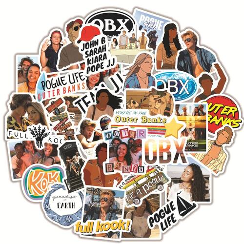 Pacote de adesivos Outers Banks Anime, vinil impermeável, 50 unidades