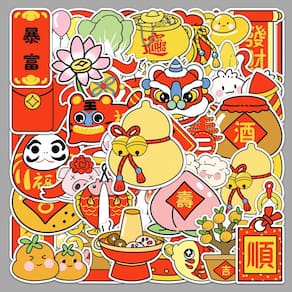 Material: papel e vinil Peso: 30-60 g Tamanho: 3-6 cm Quantidade: 50 unidades 🧧 Tema festivo de Ano Novo — Inclui 50 adesivos de vinil exclusivos com dança do leão, fogos de artifício, símbolos vermelhos da sorte, elementos chineses desenhados à mão e ícones de festivais em estilo cartoon. Vinil impermeável durável — Feitos com vinil de PVC premium e laminação brilhante, esses decalques são à prova d'água, resistentes a arranhões e ao desbotamento, mantendo as cores brilhantes por muito tempo. Uso decorativo versátil — perfeito para laptops, cadernos, álbuns de recortes, skates, capas de telefone, malas, diários, capacetes e garrafas de água com um toque festivo chinês. Para crianças, adolescentes e adultos — Desenhos animados divertidos e divertidos atraem todas as idades, o que os torna ótimos para artesanato, material escolar e decorações sazonais de Natal. Fácil de aplicar e remover — os adesivos descascam suavemente, aderem com firmeza e podem ser removidos sem deixar resíduos, tornando-os reutilizáveis e ideais para decoração temporária ou durante todo o ano.
