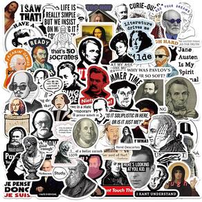 Material: papel e vinil Peso: 30-60 g Tamanho: 3-6 cm Quantidade: 50 unidades Tema de filosofia criativa — Inclui 50 adesivos exclusivos com filósofos, cientistas e escritores famosos com ilustrações divertidas e citações espirituosas. Impermeável e durável — Feito de vinil de alta qualidade, à prova d'água e resistente ao sol, garantindo cores brilhantes e uso duradouro. Fácil de aplicar — A forte adesão permite uma aderência firme, ao mesmo tempo que é removível sem deixar resíduos pegajosos. Ampla variedade de usos — Perfeito para decorar laptops, skates, diários, garrafas de água, bicicletas, guitarras, malas e álbuns de recortes. Ótimo para estudantes e professores — Ideal para salas de aula, amantes da literatura e qualquer pessoa que goste de humor intelectual e citações motivacionais.