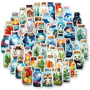 Desenhos serenos inspirados em garrafas — cada adesivo mostra cenas calmas e aconchegantes, como céu noturno, florestas, flores, frutas e animais selados em potes de vidro artísticos com tons pastel suaves. Vinil impermeável premium — Feito de material de vinil de alta qualidade que é à prova d'água, resistente a rasgos e durável — adequado para superfícies internas e externas. Versátil para decoração — perfeito para personalizar laptops, garrafas de água, skates, diários, capas de telefone, cadernos e agendas. Ótimo para crianças criativas e amantes de decoração. Fácil de aplicar e remover — Design de descascar e colar com forte aderência. Os adesivos não deixam resíduos pegajosos e não danificam as superfícies quando removidos ou reposicionados. Tamanho perfeito para projetos de bricolage — os adesivos medem entre 5 e 8 cm, ideais para escrever no diário com marcadores, embalagens, manuais, artesanato e organização estética.