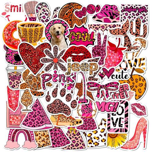 Pacote de adesivos Pink Leopard Anime, vinil impermeável, 50 unidades