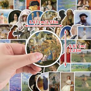Material: papel e vinil Peso: 30-60 g Tamanho: 3-6 cm Quantidade: 50 peças de desenhos de arte famosos — Inclui 50 adesivos inspirados em pinturas a óleo clássicas, com retratos, paisagens, arte floral e obras-primas históricas em detalhes vívidos. Vinil impermeável durável — Feitos com vinil de alta qualidade, esses decalques são à prova d'água, resistentes ao sol e à prova de arranhões, garantindo que as cores permaneçam brilhantes e duradouras. Fácil de aplicar e remover — os adesivos são descascados e colados suavemente na maioria das superfícies planas, removíveis sem deixar resíduos ou danos. Decoração multiuso — Ótima para laptops, diários, álbuns de recortes, garrafas de água, guitarras, skates, malas, cadernos e projetos de artesanato DIY. Para entusiastas e estudantes de arte — Ideal para adolescentes, adultos e usuários criativos que apreciam artes plásticas e desejam decorar objetos pessoais com designs atemporais.