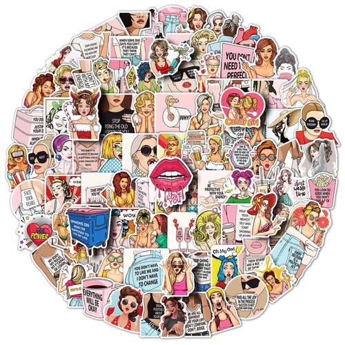Material: papel e vinil Peso: 30-60 g Tamanho: 3-6 cm Quantidade: 100 unidades do tema Pop Art Girl — Conjunto de 100 adesivos com mulheres estilosas, ilustrações ousadas de arte pop em estilo cômico e citações de empoderamento feminista para uma estética única. Material de vinil à prova d'água — adesivos de PVC duráveis com revestimento à prova d'água e resistente a rasgos, adequados para superfícies internas e externas. Personalização DIY — Perfeita para decorar laptops, skates, malas, guitarras, telefones, diários, álbuns de recortes e garrafas de água com designs criativos. Fácil de usar — Aplicação de descascar e colar, forte adesão, mas removível sem deixar resíduos pegajosos, tornando-os reutilizáveis para vários projetos. Ideal para adolescentes e adultos — Ótimo para amantes da moda, entusiastas de bricolage e qualquer pessoa que queira adicionar expressão artística e vibrações motivacionais aos seus pertences.