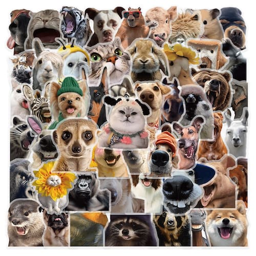 Material: papel e vinil Peso: 30-60 g Tamanho: 3-6 cm Quantidade: 50 unidades de tema engraçado para cães e animais — Inclui 50 adesivos realistas em estilo animal de estimação com cães, gatos e outros animais em poses hilárias e designs expressivos. Desenhos criativos e realistas — Impressão de alta qualidade com detalhes vívidos, combinando animais de estimação realistas com elementos engraçados de desenhos animados para uma decoração exclusiva. Durável e impermeável — Feito de material PET de vinil premium, à prova d'água e resistente ao sol, garantindo cores brilhantes que duram muito. Ampla aplicação — Perfeito para laptops, capas de telefone, garrafas de água, diários, álbuns de recortes, skates, cadernos e malas de viagem. Para crianças, adolescentes e adultos — Decalques de animais fofos e engraçados adequados para artesanato infantil, acessórios para adolescentes ou decoração diária para adultos.