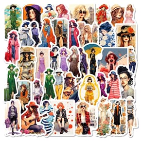 Material: papel e vinil Peso: 30-60 g Tamanho: 3-6 cm Quantidade: 50 unidades. Designs elegantes para meninas urbanas — Inclui 50 adesivos exclusivos com garotas da cidade na moda retrô de Hong Kong, looks de rua chiques e roupas de inspiração vintage. Vinil impermeável durável — Feitos com vinil de alta qualidade, esses decalques são à prova d'água, resistentes a arranhões e duradouros com cores retrô vibrantes. Decoração multifuncional — ideal para laptops, capas de telefone, diários, malas, álbuns de recortes, garrafas de água, skates e outros projetos criativos de bricolage. Fácil aplicação e remoção — Os adesivos aderem com segurança a superfícies lisas e podem ser removidos sem deixar resíduos pegajosos ou causar danos. Perfeitos para adolescentes e adultos — Projetados para amantes do retrô e entusiastas da moda, esses adesivos de vinil trazem um clima urbano nostálgico aos seus acessórios.
