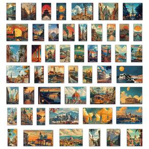 Material: papel e vinil Peso: 30-60 g Tamanho: 3-6 cm Quantidade: 50 unidades Tema de cenário retrô — Contém 50 adesivos exclusivos com paisagens urbanas vintage em estilo de quadrinhos, pontos turísticos e paisagens coloridas. Estilo artístico e vintage — Projetado com tons retrô e detalhes em quadrinhos desenhados à mão, criando uma estética nostálgica perfeita para projetos criativos. Durável e impermeável — Feito de vinil de alta qualidade com revestimento à prova d'água e resistente ao desbotamento para garantir um uso vibrante e duradouro. Ampla variedade de usos — Ideal para laptops, cadernos, diários, garrafas de água, skates, álbuns de recortes, capas de telefone e decoração de malas. Fácil de usar — O adesivo forte adere com firmeza, mas permite uma remoção limpa sem deixar resíduos pegajosos.