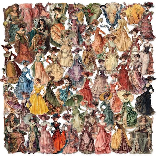 Material: papel e vinil Peso: 30-60 g Tamanho: 3-6 cm Quantidade: 50 unidades Tema elegante para mulheres retrô — Um conjunto de 50 adesivos com mulheres européias vintage em vestidos, chapéus e poses elegantes de inspiração vitoriana, ideais para decoração artística clássica. Vinil impermeável durável — Feitos de vinil de PVC de alta qualidade, esses decalques são à prova d'água, resistentes a arranhões e à prova de desbotamento, garantindo cores vibrantes e duradouras. Fácil de colar e remover — O adesivo forte facilita a aplicação em superfícies lisas, removíveis sem resíduos pegajosos e reutilizáveis para diferentes projetos de bricolage. Aplicações versáteis — Perfeitas para laptops, álbuns de recortes, diários, garrafas de água, capas de celular, malas e skates, adicionando um toque retrô sofisticado aos itens pessoais. Escolha criativa de bricolage — Ótima para estudantes, adolescentes e adultos que gostam de escrever em diários, criar e fazer coleções de ilustrações em estilo vintage.