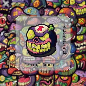 Material: papel e vinil Peso: 30-60 g Tamanho: 3-6 cm Quantidade: 50 unidades 50 designs exclusivos O conjunto inclui 50 adesivos de pôster de terror de inspiração retrô com desenhos animados assustadores, frases de humor negro e obras de arte em estilo vintage para um visual ousado e ousado. Impermeável e durável Feito de vinil premium com acabamento à prova d'água e resistente a UV para manter as cores vivas e os adesivos intactos em superfícies internas e externas. A aplicação de peel-and-stick fácil de usar e sem resíduos torna a decoração rápida e fácil; os adesivos podem ser removidos sem deixar resíduos pegajosos ou danificar as superfícies. Decoração versátil Perfeita para laptops, diários, álbuns de recortes, skates, malas, garrafas de água e muito mais, permitindo que você personalize seus itens com um toque assustador. Perfeito para adolescentes e adultos. Designs legais, peculiares e com temas de terror tornam este pacote ideal para colecionadores, amantes do Halloween e fãs da arte retrô do humor negro.