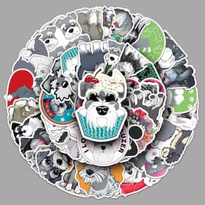 Charming Schnauzer Designs — Apresenta 50 decalques de vinil exclusivos de adoráveis cães Schnauzer em estilos ilustrados e de desenhos animados, perfeitos para amantes de cães, crianças e projetos criativos. Material impermeável de alta qualidade — Feito de vinil durável que é à prova d'água, à prova de sol e resistente ao desbotamento, garantindo uma decoração duradoura em ambientes internos e externos. Fácil de descascar e colar — Os adesivos se aplicam suavemente na maioria das superfícies e são removidos de forma limpa, sem deixar resíduos de adesivo, ideais para personalizar cadernos, laptops e garrafas. Tamanho ideal para itens pessoais — Cada decalque mede entre 5 e 8 cm, o que os torna perfeitos para decoração detalhada em suas garrafas de água, capas de telefone, diários e skates. Diversão para todas as idades — Uma ótima maneira de adicionar personalidade aos itens do dia a dia, adequada para crianças, adolescentes e adultos que adoram Schnauzers e adoram criar ou decorar.