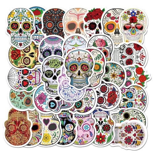 Material: papel e vinil Peso: 30-60 g Tamanho: 3-6 cm Quantidade: 50 unidades Tema colorido de caveira — Inclui 50 adesivos exclusivos com caveiras de açúcar, padrões florais, rosas e designs inspirados no Día de los Muertos com detalhes ousados. Durável e impermeável — Feito de vinil premium com revestimento à prova d'água e resistente ao sol, garantindo cores vibrantes e durabilidade duradoura em ambientes internos ou externos. Decoração versátil — perfeita para laptops, álbuns de recortes, skates, malas, garrafas de água, guitarras, capacetes, cadernos, capas de telefone e superfícies mais criativas. Estética festiva e assustadora — combina a arte mexicana da caveira de açúcar com elementos de grafite de terror, ótima para o Halloween, celebrações do Dia dos Mortos ou decoração DIY. Fácil de descascar e não deixar resíduos — O adesivo forte fornece uma aderência segura, removível sem deixar resíduos pegajosos, seguro para adolescentes e adultos. Tema colorido de caveira — inclui 50 adesivos exclusivos com caveiras de açúcar, padrões florais, rosas e designs inspirados no Día de los Muertos com detalhes ousados. Durável e impermeável — Feito de vinil premium com revestimento à prova d'água e resistente ao sol, garantindo cores vibrantes e durabilidade duradoura em ambientes internos ou externos. Decoração versátil — perfeita para laptops, álbuns de recortes, skates, malas, garrafas de água, guitarras, capacetes, cadernos, capas de telefone e superfícies mais criativas. Estética festiva e assustadora — combina a arte mexicana da caveira de açúcar com elementos de grafite de terror, ótima para o Halloween, celebrações do Dia dos Mortos ou decoração DIY.