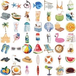 Material: papel e vinil Peso: 30-60 g Tamanho: 3-6 cm Quantidade: 50 unidades O tema de praia e piscina inclui 50 peças de adesivos criativos com ondas do mar, pranchas de surfe, frutas, bebidas, conchas marinhas, sorvetes, sol e elementos de viagem de verão. Vinil impermeável durável Feitos de material de vinil de alta qualidade, esses decalques são à prova d'água, resistentes ao sol e removíveis sem resíduos pegajosos, garantindo uma decoração duradoura. Decoração com várias cenas. Perfeita para laptops, garrafas de água, capas de telefone, diários, skates, malas, álbuns de recortes e projetos de bricolage para festas de verão. Estilo estético moderno Projetado com detalhes vibrantes em aquarela e vibrações estéticas de praia, trazendo frescor e diversão de verão aos itens pessoais. Para adolescentes e adultosIdeal para viajantes, estudantes, surfistas e qualquer pessoa que goste de adesivos de decoração de verão elegantes e divertidos. O tema de praia e piscina inclui 50 adesivos criativos com ondas do mar, pranchas de surfe, frutas, bebidas, conchas marinhas, sorvetes, sol e elementos de viagem de verão. Vinil impermeável durável Feitos de material de vinil de alta qualidade, esses decalques são à prova d'água, resistentes ao sol e removíveis sem resíduos pegajosos, garantindo uma decoração duradoura. Decoração com várias cenas. Perfeita para laptops, garrafas de água, capas de telefone, diários, skates, malas, álbuns de recortes e projetos de bricolage para festas de verão. Estilo estético moderno Projetado com detalhes vibrantes em aquarela e vibrações estéticas de praia, trazendo frescor e diversão de verão aos itens pessoais.