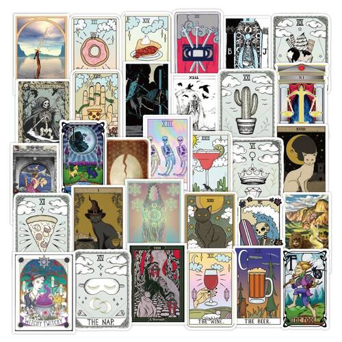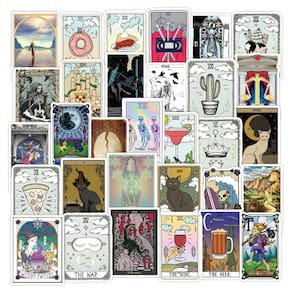 Adesivos de tarô criativos: este pacote inclui 50 adesivos de vinil com designs exclusivos e artísticos de cartas de tarô. Cada adesivo mostra uma variedade de ilustrações detalhadas de tarô em estilo rabisco, perfeitas para aqueles interessados em arte mística. Material de vinil de alta qualidade: feitos de vinil durável e à prova d'água, esses adesivos são feitos para durar e podem suportar o uso diário. Ideal para laptops, skates, malas e muito mais. Aplicação versátil: esses decalques são perfeitos para personalizar seu laptop, bagagem, capa de telefone, garrafas de água e notebooks. Eles são ótimas adições a qualquer coleção ou como uma forma criativa de decorar seus itens pessoais. Fácil de aplicar e remover: cada decalque é fácil de descascar e aplicar. Eles também podem ser removidos sem deixar resíduos pegajosos, o que os torna perfeitos para quem gosta de mudar seus designs com frequência. Ótimo presente para amantes de tarô: se você gosta de ler tarô ou adora símbolos místicos, esses adesivos com tema de tarô são o presente ideal para amigos, familiares ou para você mesmo.