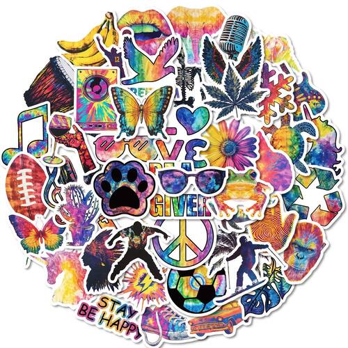 Material: papel e vinil Peso: 30-60 g Tamanho: 3-6 cm Quantidade: 50 peças de desenhos psicodélicos de tie-dye — Inclui 50 peças de adesivos com padrões de tie-dye arco-íris com borboletas, flores, sinais de paz, animais e gráficos inspirados na música. Vinil impermeável durável — Feitos de vinil impermeável premium, esses decalques resistem ao desbotamento, rasgos e danos causados pela água, ideais para uso interno e externo. Pacote DIY criativo — perfeito para personalizar laptops, skates, álbuns de recortes, garrafas de água, geladeiras, capas de telefone e malas com arte ousada e colorida em estilo grafite. Diversão para adolescentes e adultos — Conjunto de adesivos seguro e fácil de usar, adequado para estudantes, amantes da música e entusiastas da arte; ótimo para coleções pessoais ou projetos de bricolage. Remoção sem resíduos — O design autoadesivo adere com firmeza e descasca suavemente sem deixar resíduos pegajosos, permitindo a reutilização em diferentes superfícies.