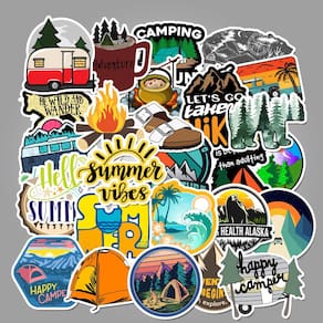 Material: papel e vinil Peso: 30-60 g Tamanho: 3-6 cm Quantidade: 100 unidades Tema de aventura de viagem 100 peças de adesivos de vinil com campings, pôr do sol, montanhas, tendas, fogueiras e vibrações de verão, perfeitos para viajantes, campistas e amantes de atividades ao ar livre. Durável e impermeável Feito de vinil de PVC de alta qualidade com revestimento impermeável, à prova de sol e resistente ao desbotamento, mantendo as cores brilhantes em garrafas, laptops ou bagagens. Fácil de usar. O adesivo forte garante que os decalques grudem firmemente em superfícies lisas; o design destacável permite uma remoção limpa sem deixar resíduos pegajosos. Amplo uso decorativo Ideal para decorar carros, skates, guitarras, cadernos, diários, capacetes, telefones e malas, adicionando uma estética divertida de viagem e ao ar livre. Criativo para adolescentes e adultosÓtimo para amantes de bricolage, estudantes, viajantes e aventureiros que gostam de personalizar itens pessoais com designs de adesivos de vinil elegantes e vibrantes.