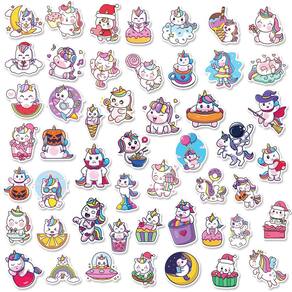 Pacote de adesivos Unicorn Kids, vinil impermeável, 100 unidades
