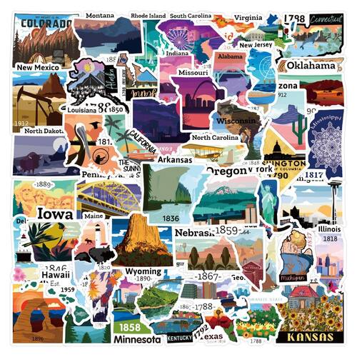 Material: papel e vinil Peso: 30-60 g Tamanho: 3-6 cm Quantidade: 50 unidades Pacote temático de mapas dos EUA 50 unidades de adesivos de vinil com estados, paisagens, mapas e pontos turísticos dos EUA, projetados para viajantes, colecionadores e amantes da geografia. Duráveis e impermeáveis Feitos de material de PVC premium, esses decalques são à prova d'água, resistentes aos raios UV e a arranhões, garantindo cores vivas e uso duradouro. Decoração versátil Perfeita para laptops, skates, garrafas de água, malas, álbuns de recortes, cadernos, telefones, capacetes e muito mais, trazendo o clima de viagem americano. Fácil de aplicar e remover. O design peel-and-stick permite uma aplicação suave e fácil remoção sem resíduos pegajosos, seguro para crianças e adultos. Educacional e decorativoÓtimo para aprender a geografia dos EUA enquanto decora itens pessoais, combinando diversão, criatividade e valor educacional.