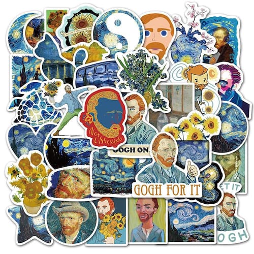 Material: papel e vinil Peso: 30-60 g Tamanho: 3-6 cm Quantidade: 40 peças de desenhos inspirados em Van Gogh — Inclui 40 adesivos com temas artísticos famosos, como Noite Estrelada, Girassóis e retratos criativos de Van Gogh em um estilo divertido de grafite. Vinil impermeável durável — Feitos de material de vinil de alta qualidade, esses decalques são à prova d'água, resistentes aos raios UV e à prova de arranhões, garantindo cores vibrantes e duradouras. Fácil de usar e sem resíduos — os adesivos se soltam suavemente e aderem firmemente à maioria das superfícies, removíveis sem deixar resíduos ou danos. Decoração multifuncional — perfeita para decorar laptops, álbuns de recortes, diários, garrafas de água, guitarras, skates, malas e artesanato de bricolage. Para adolescentes e amantes da arte — Ótima opção para estudantes, adultos e entusiastas criativos que gostam de arte clássica em um divertido estilo de adesivo moderno.