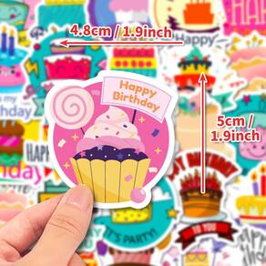 Material: papel e vinil Peso: 30-60 g Tamanho: 3-6 cm Quantidade: 50 unidades Os designs temáticos de aniversário incluem bolos, cupcakes, velas, balões e texto de “Feliz Aniversário” em estilo divertido de desenho animado para criar uma atmosfera festiva. Material de vinil durável Feitos de vinil de PVC de alta qualidade, esses adesivos são à prova d'água, resistentes ao desbotamento e a arranhões, garantindo uma decoração brilhante e duradoura. Os adesivos de remoção sem resíduos aderem firmemente à maioria das superfícies lisas, mas podem ser removidos de forma limpa, sem deixar resíduos pegajosos ou danificar itens. Ampla aplicação. Perfeito para álbuns de recortes, diários, laptops, garrafas de água, capas de telefone, skates, malas, geladeiras e decorações de festa de aniversário DIY. Adequado para todas as idades. Decalques divertidos e coloridos projetados para crianças, adolescentes e adultos, facilitando a personalização de pertences e suprimentos para festas.