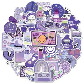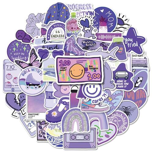 Pacote de adesivos: vinil impermeável Purple World Anime, 50 unidades