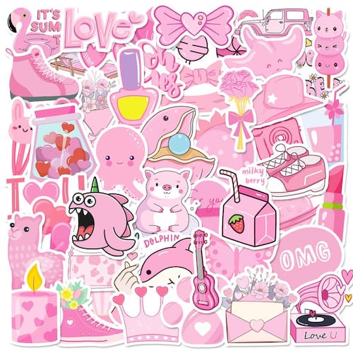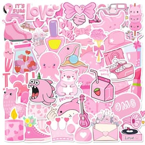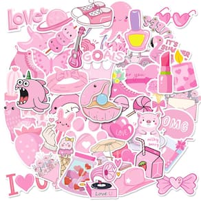 Material: papel e vinil Peso: 30-60 g Tamanho: 3-6 cm Quantidade: 50 unidades Hawaii Pink Mix 50 peças de adesivos de vinil adoráveis com lhamas, golfinhos, porcos, polvos, tênis, caixas de leite, coroas, laços, flores e ícones de desenhos animados rosa pastel. Qualidade impermeável durável Feitos de PVC de alta qualidade, esses decalques são à prova d'água, à prova de sol e resistentes ao desbotamento, adequados para decoração duradoura. Ampla aplicação. Perfeito para laptops, skates, capas de telefone, garrafas de água, diários, álbuns de recortes, malas e projetos de bricolage com uma nova atmosfera rosa VSCO. Os adesivos autoadesivos Easy Peel & Stick se aplicam suavemente em superfícies planas e limpas e são removidos sem deixar resíduos pegajosos, reutilizáveis para decoração criativa. Ótimo para adolescentes e meninas Uma opção moderna de kawaii para estudantes, fãs de papelaria e entusiastas de bricolage que gostam de designs divertidos e fofos de animais rosa.