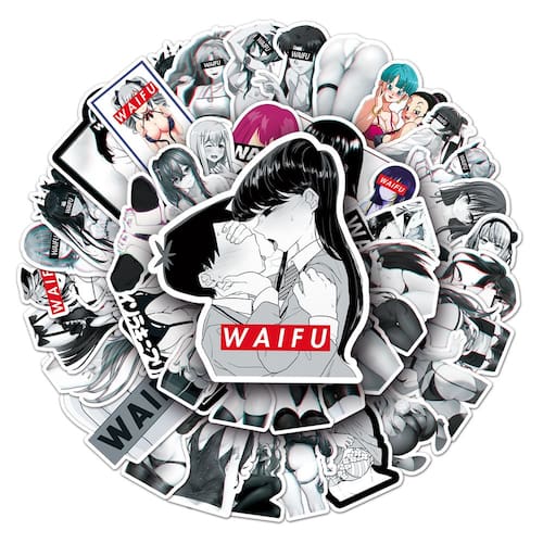 Pacote de adesivos Waifus Anime Waifus, vinil impermeável, 50 unidades